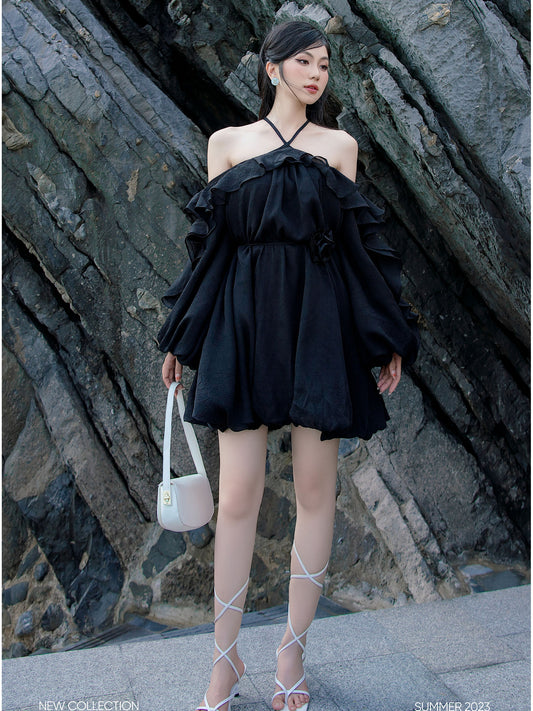 Tizi Dress - Off-shoulder Ruffle Dress, Elegant and Sophisticated