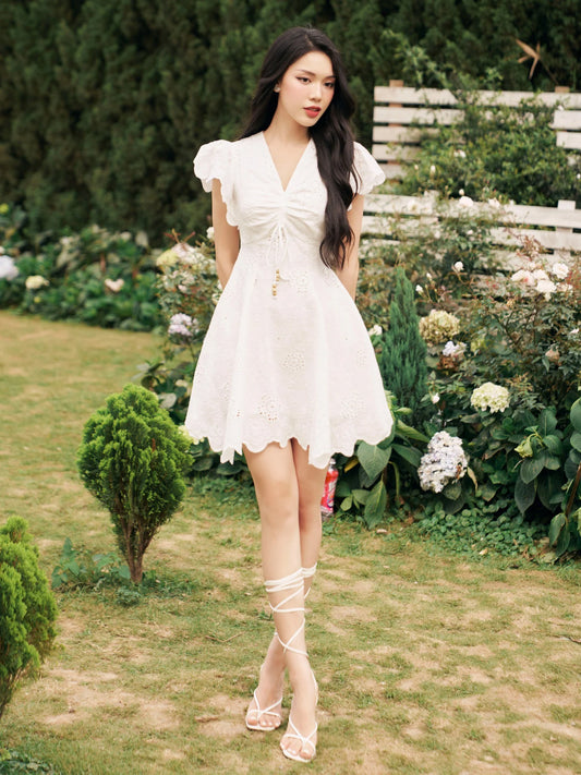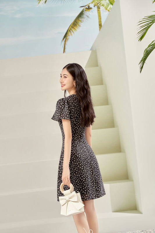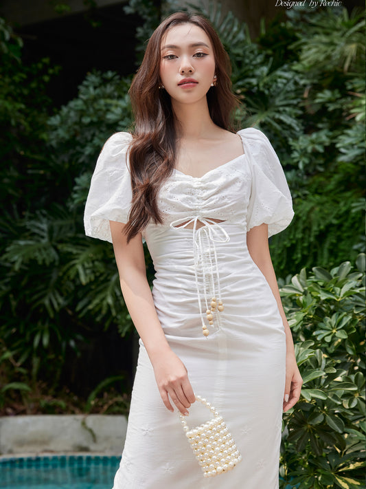 Rin Dress - Luxurious V-Neckline, Puffed Sleeves, And A Chic Waist