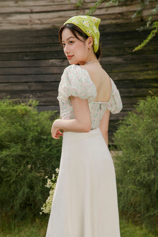 Syloo Top - Feminine Floral Puffed Sleeve Croptop