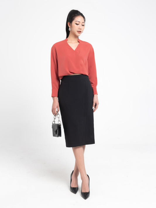 Formal Skirt - Midi Skirt With Wrapped Crossover Design