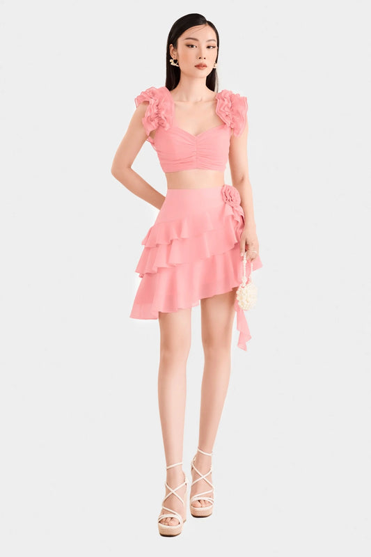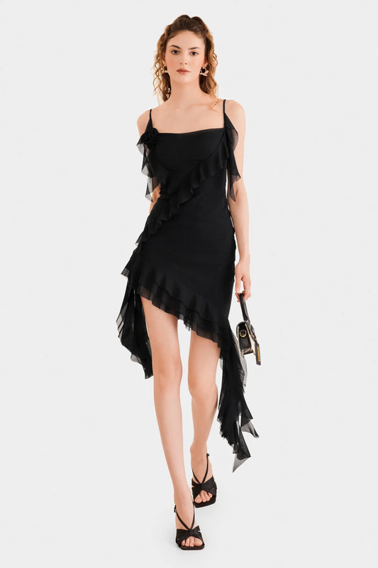 Ruffles And Flower Mini Dress