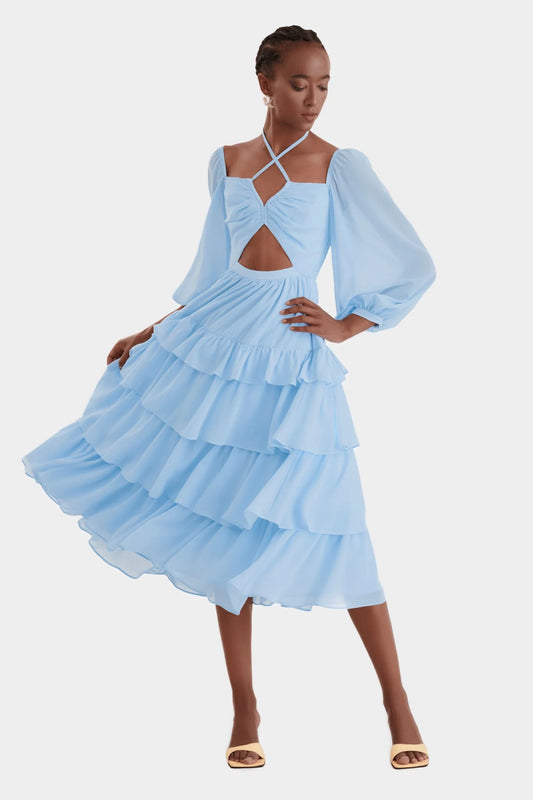 Multi-Layered Long Sleeved Cut Out Midi Dress