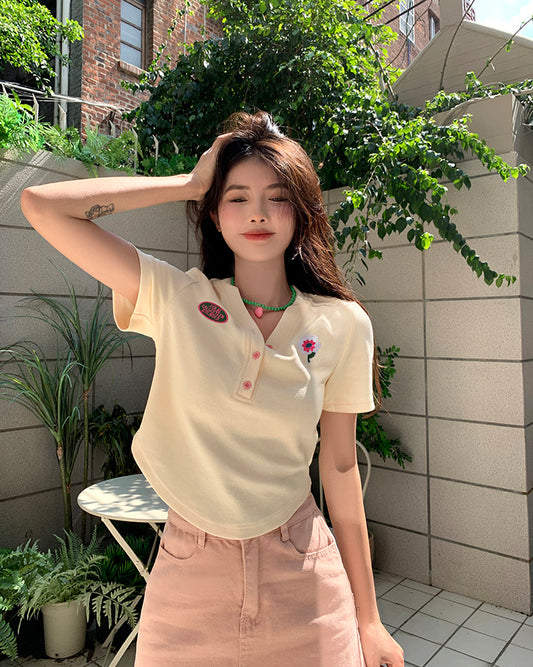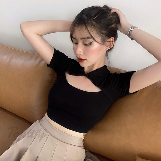Short Sleeve Split Collar And Buttons Crop TopVendor:TOPTIFYRegular price $22.00 USDRegular priceUnit price / per$25.00 USDSale price $22.00 USDSale
