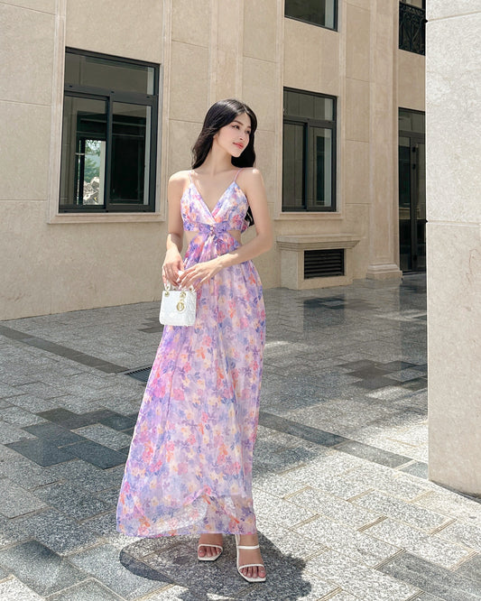 Myss Dress - Lightweight And Gentle, Waist Cut-Out With A Feminine And Delicate Layered Floral Pattern