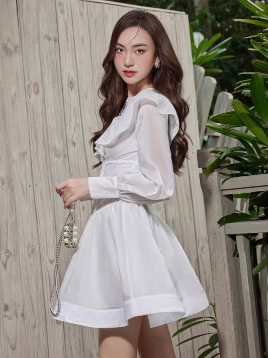 Koky Dress - Round Neckline, Long Sleeves, Layered Ruffled Chest Exudes A Gentle And Feminine Charm